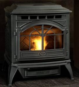 Quadra-Fire Castille Those looking for a traditional looking stove can find it in theQuadra-Fire Castille. This cast iron stove provides the warmth of a glass face along with the classic cast iron look many want in their home. The burning capacity of 34,400 BTU per hour makes it possible to get the amount of heat you are looking for out of the unit without wasting a lot of energy. The stove has the ability to heat an area of 1,500 square feet so even fairly large rooms can get the heat you are looking for. The 40 pound hopper allows you to keep the stove fired up for a long period of time. The feed system has a patented design to make sure it will not jam while it is operation.