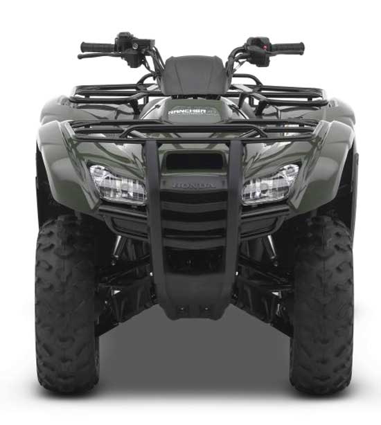 Stout front bumper, full skid plate, axle guards, and tucked in bodywork make the Rancher AT a good choice for tight, nasty trail riding.